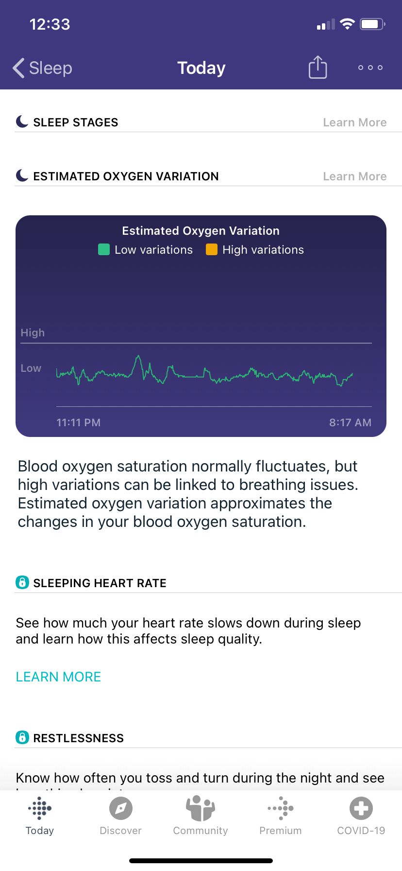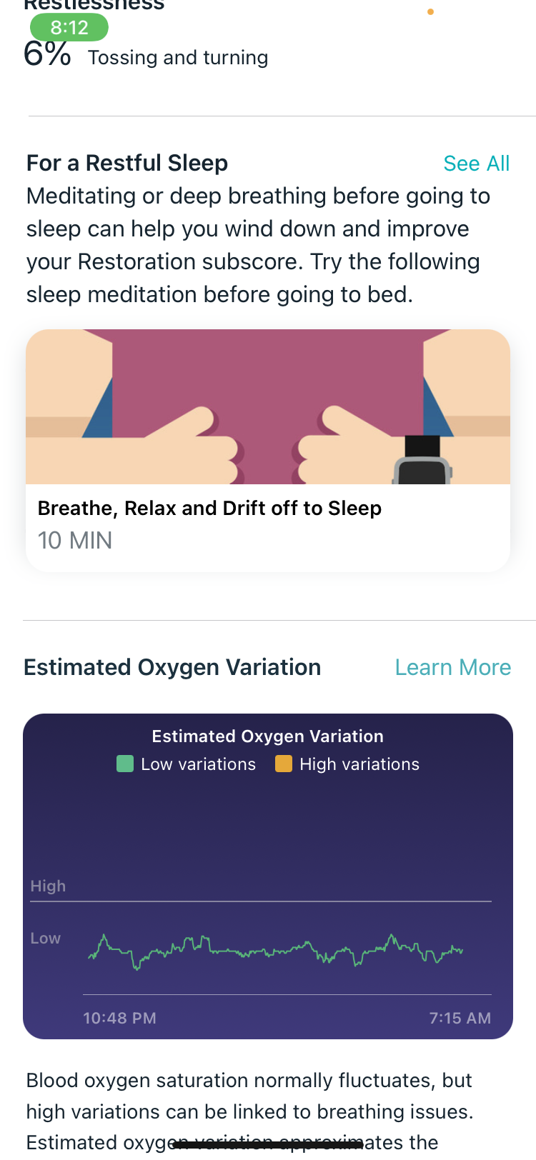 Solved Estimated Oxygen Variability Is Live D Fitbit Community from community.fitbit.com The fitbit estimated oxygen variation score. According to fitbit's help center: Mar 22, 2021 · an "estimated oxygen variation" graph showed high and low variations as part of the broader sleep menu. Note that if you extend your time asleep, you may see gaps at the start or end times of your sleep stages. Towards the end of 2020, fitbit smartwatches (ionic, versa 2/3, and sense) were updated. Jan 16, 2020 · fitbitのスマートウォッチやアクティビティトラッカーの一部モデルが「spo2」の計測に対応しました。redditで、アップデートを受け取ったユーザー. If your sleep start or end times are incorrect, you can manually edit your sleep log to better reflect your time asleep. An oxygen saturation percentage greater than 95% is considered to be a normal reading.